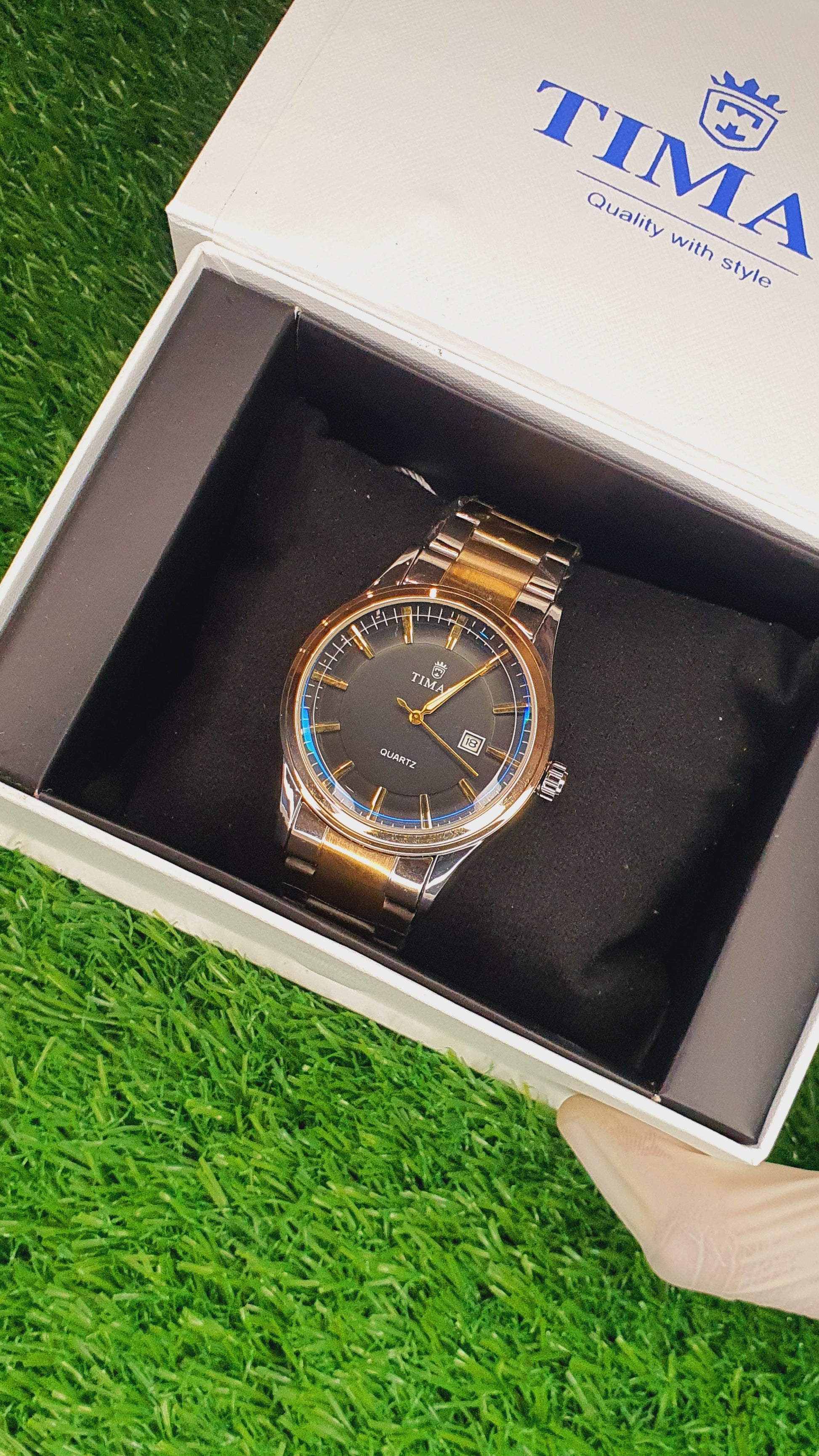 Elevate your everyday style with the sophisticated TIMAS Two-Tone Watch. This handsome timepiece features a classic black dial accented by polished indices and a practical date display. The robust two-tone metal bracelet (combining silver and warm gold/copper tones) gives the watch a luxurious and versatile look, making it perfect as a business casual watch. Designed with the TIMAS quality with style promise, this men's two-tone bracelet watch is a timeless accessory that offers excellent value and durability. If you are searching for a black dial metal watch or a reliable two-tone dress watch, this model is the perfect choice.